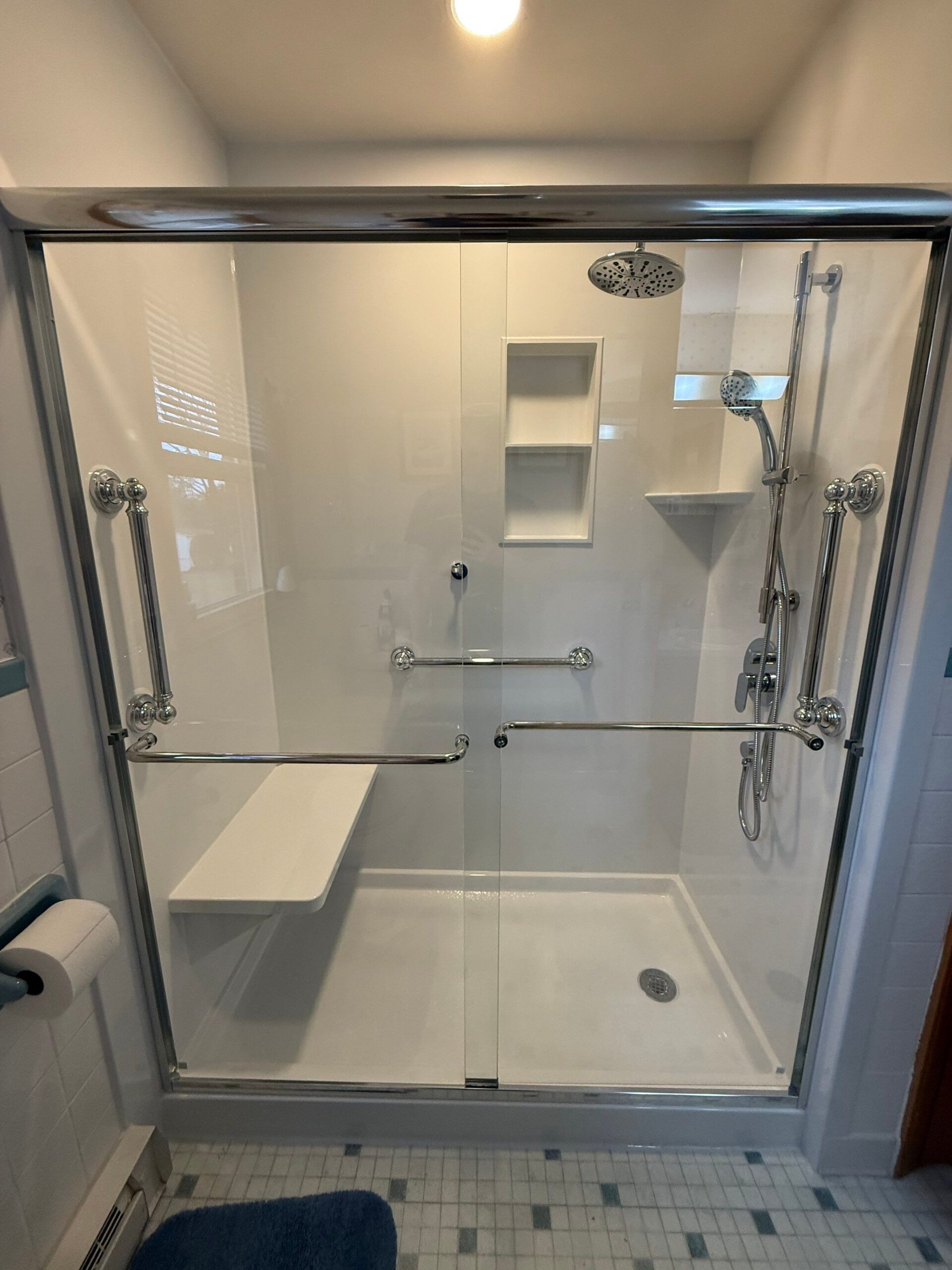 Bath Planet SW Virginia redesigned this wet are to fit the homeowners every need. From the tip of the rain head, to the bottom of the shower pan, this area is optimized for safety, comfortability, and luxury at its finest!