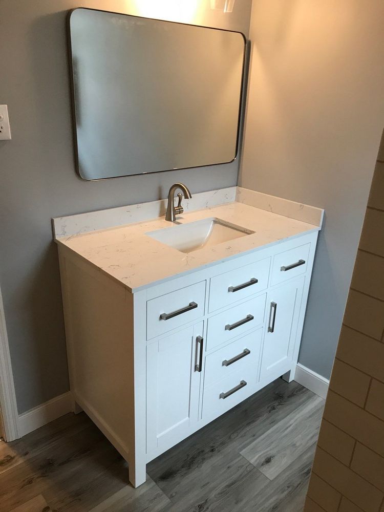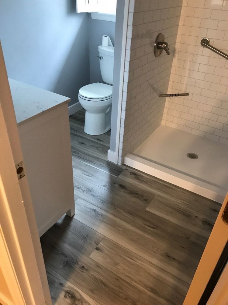 The project started in the master bathroom, where the existing shower and finishes no longer matched the homeowners’ needs. Bath Planet SW Virginia removed the old shower and prepared the area for a new standard shower system. The team focused on creating a layout that would hold up to daily use while still looking clean and inviting. Because the homeowners also wanted an updated overall look, the plan included new flooring plus installation of their customer supplied vanity, toilet, faucet, and mirror.