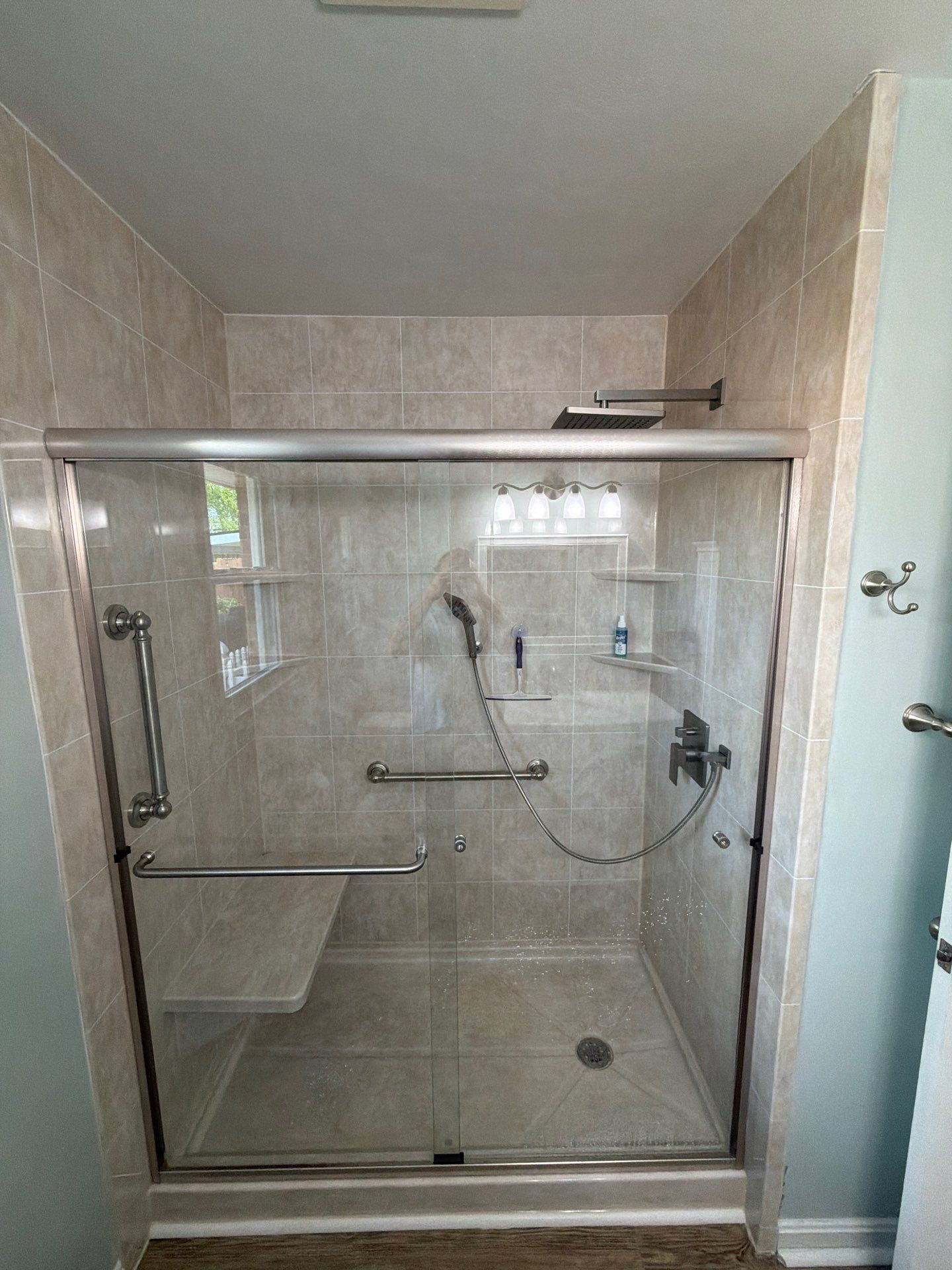 Bath Planet SWVA completed an oversized shower upgrade in Christiansburg, VA, creating a spacious and luxurious new focal point for the bathroom. The shower features elegant travertine large subway tile acrylic walls paired with brushed nickel grab bars, niche shelving, and a matching trim kit for a bold, modern finish. Together, the upscale materials blend seamlessly with the surrounding bathroom, creating a rich and cohesive luxurious vibe.